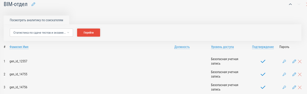 Более того, есть разделение прав относительно отдела и всей компании: например, руководитель отдела будет видеть информацию только по своим подчиненным, а HR и BIM-менеджер — по всей компании.