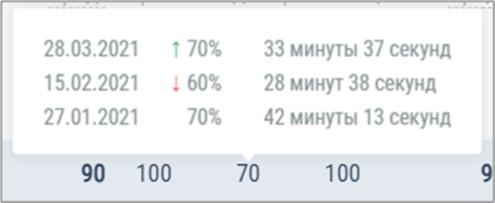 Помимо последнего результата по тесту или экзамену данный модуль отображает и историю попыток. Она даст понять, насколько давно специалист пользуется инструментом и как менялись его знания во времени. Это позволяет использовать систему и для регулярной аттестации сотрудников и мотивации их развития.