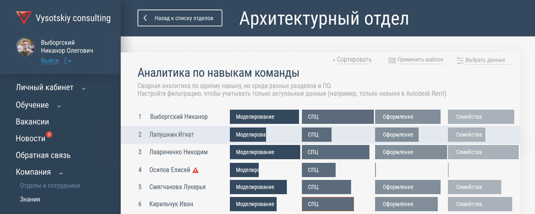 Сервис полезен как руководителю, так и HR и BIM-менеджеру