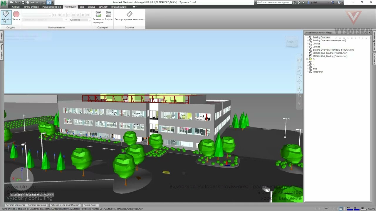 Подробный курс для тех, кто уже знаком с Autodesk Navisworks. Рассматривает практически все инструменты, доступные в программе: гибкий поиск пересечений в Clash Detective, настройки 4D-моделирования, подсчет объемов в Quantification, управление сечениями, работа с аннотациями, создание анимации, скриптов и многое другое.