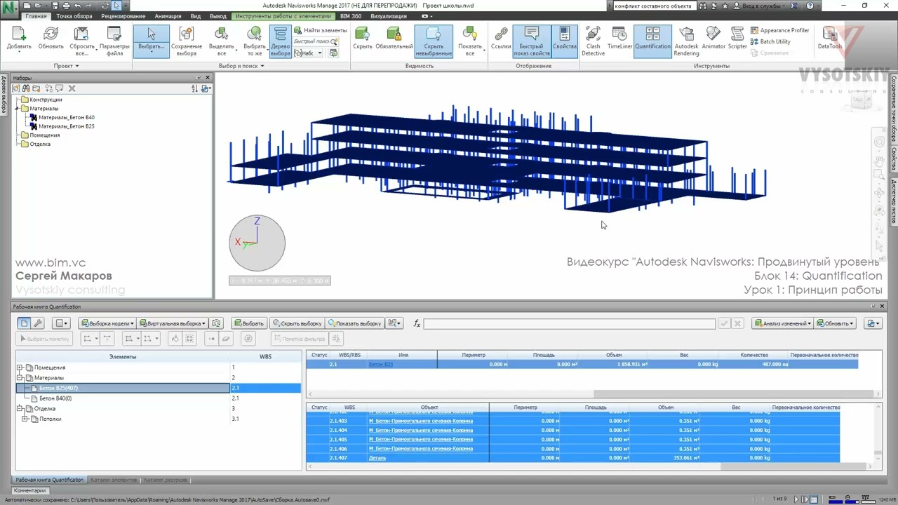 Подробный курс для тех, кто уже знаком с Autodesk Navisworks. Рассматривает практически все инструменты, доступные в программе: гибкий поиск пересечений в Clash Detective, настройки 4D-моделирования, подсчет объемов в Quantification, управление сечениями, работа с аннотациями, создание анимации, скриптов и многое другое.