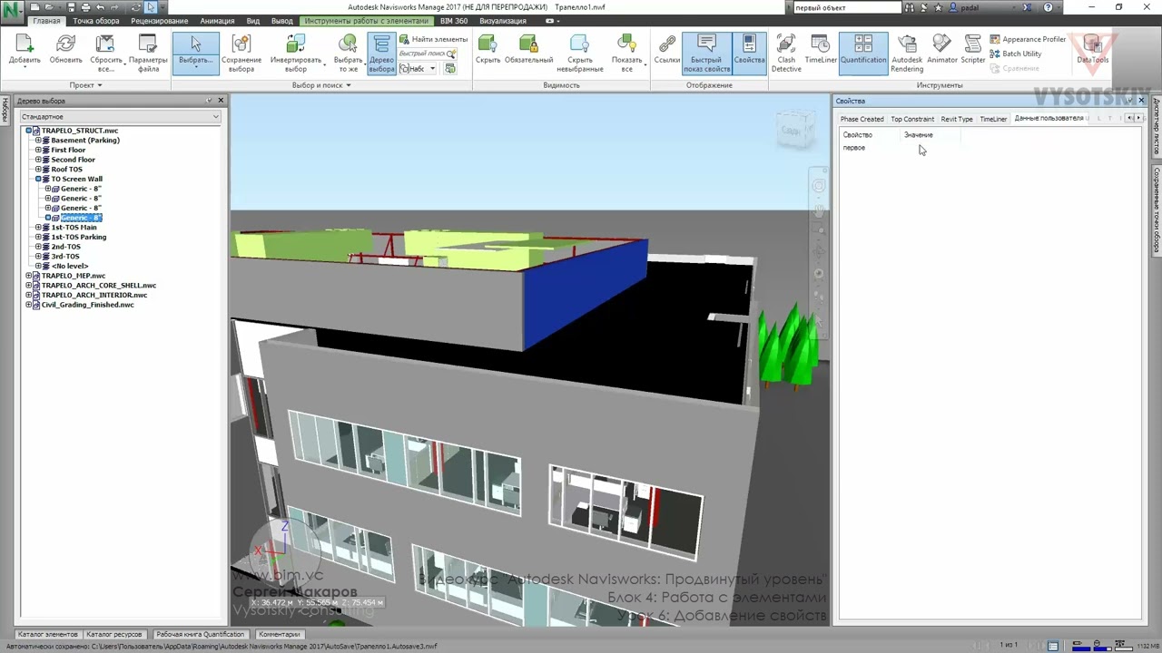 Работа ведется на основе реальной BIM-модели офиса Autodesk, расположенной в США.
