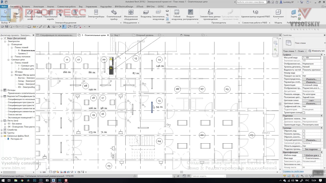 Базовый курс по построению электрических сетей в Revit. Рассматриваются основные настройки программы и создание собственных семейств электрических компонентов для старта разработки разделов по электрике и слаботочным сетям, а также формирование документации и спецификаций.