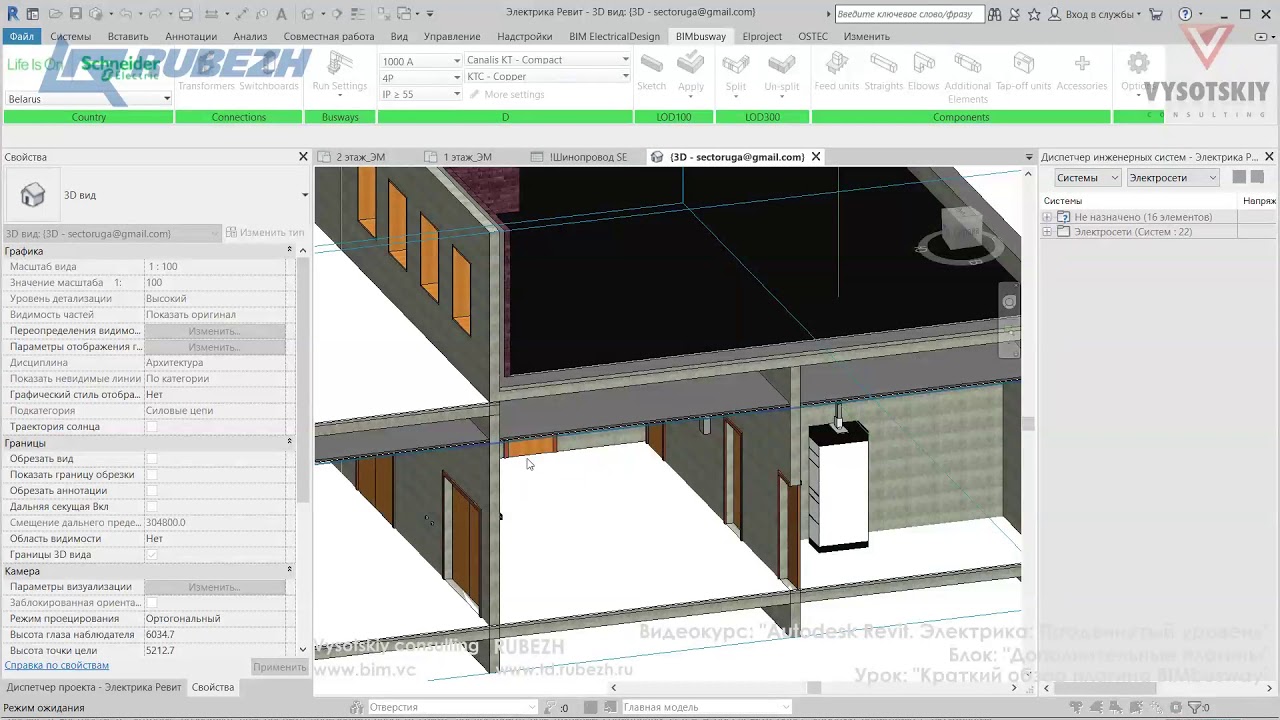 Продвинутый курс по построению электрических сетей в Revit. Рассматриваются настройки программы, создание электрических систем, молниезащита и заземление, плагины, ускоряющие работу, а также продвинутые темы формирования документации и спецификаций.