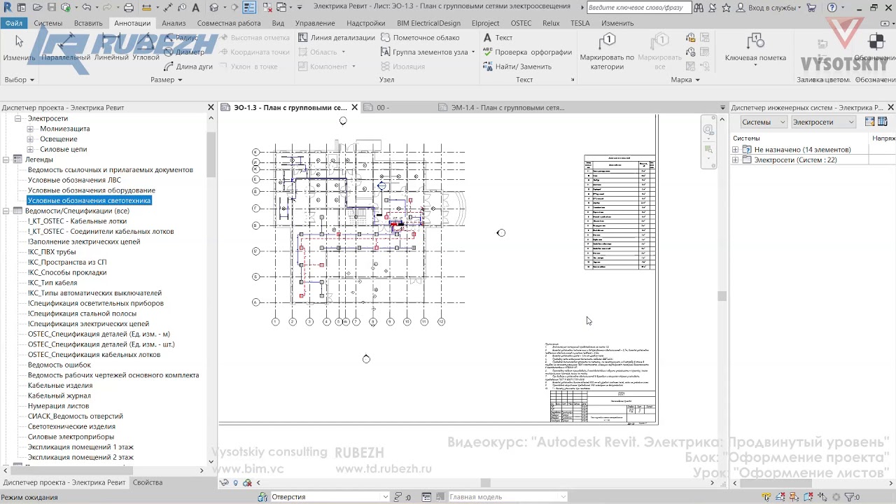 Продвинутый курс по построению электрических сетей в Revit. Рассматриваются настройки программы, создание электрических систем, молниезащита и заземление, плагины, ускоряющие работу, а также продвинутые темы формирования документации и спецификаций.