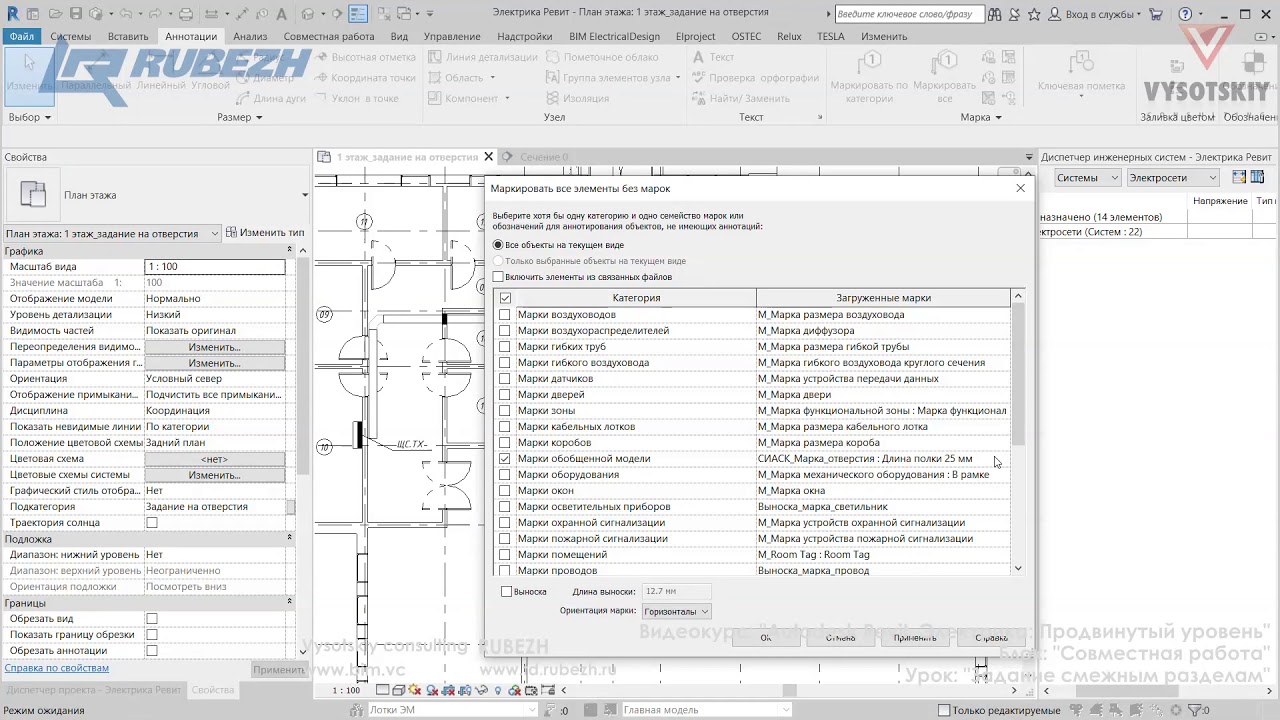 Продвинутый курс по построению электрических сетей в Revit. Рассматриваются настройки программы, создание электрических систем, молниезащита и заземление, плагины, ускоряющие работу, а также продвинутые темы формирования документации и спецификаций.