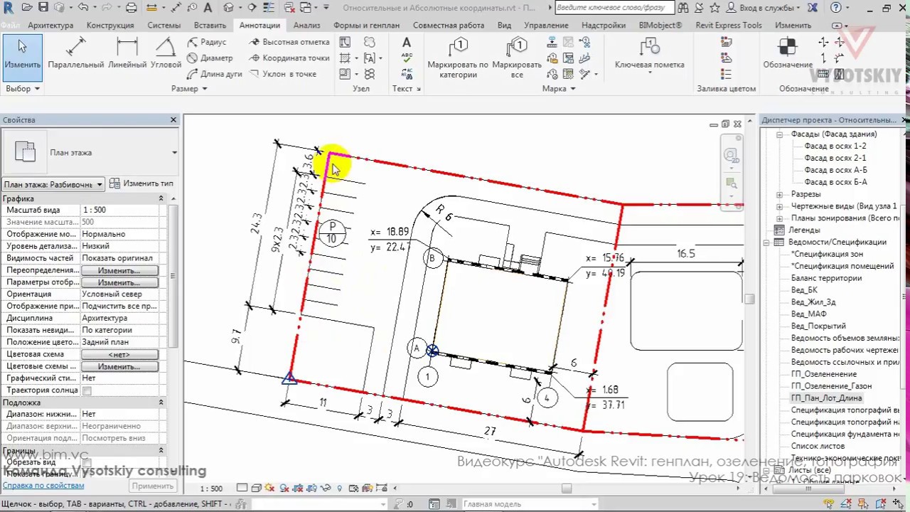В курсе вы научитесь работать с координатами в Revit, научитесь моделировать топоповерхность и границы участка, считать объемы выемки и насыпи, формировать разбивочный план, размещать МАФ, делать спецификации и многое другое.