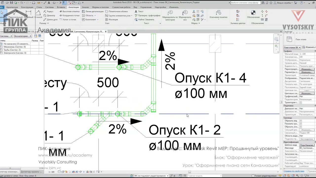 Продвинутый курс по построению трубопроводных систем разделов ОВ и ВК в Revit на основе архитектурной модели. Рассматриваются основные настройки программы, моделирование систем, а также формирование документации и спецификаций.