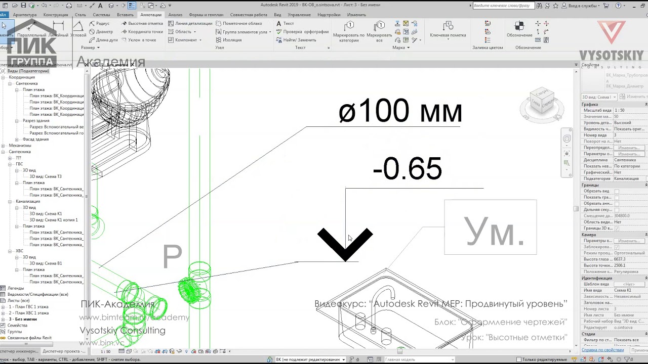 Продвинутый курс по построению трубопроводных систем разделов ОВ и ВК в Revit на основе архитектурной модели. Рассматриваются основные настройки программы, моделирование систем, а также формирование документации и спецификаций.