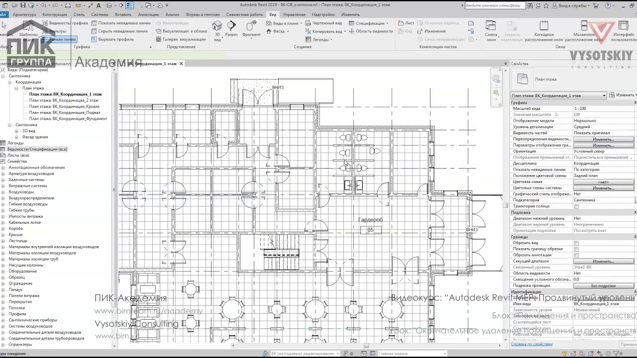 Продвинутый курс по построению трубопроводных систем разделов ОВ и ВК в Revit на основе архитектурной модели. Рассматриваются основные настройки программы, моделирование систем, а также формирование документации и спецификаций.