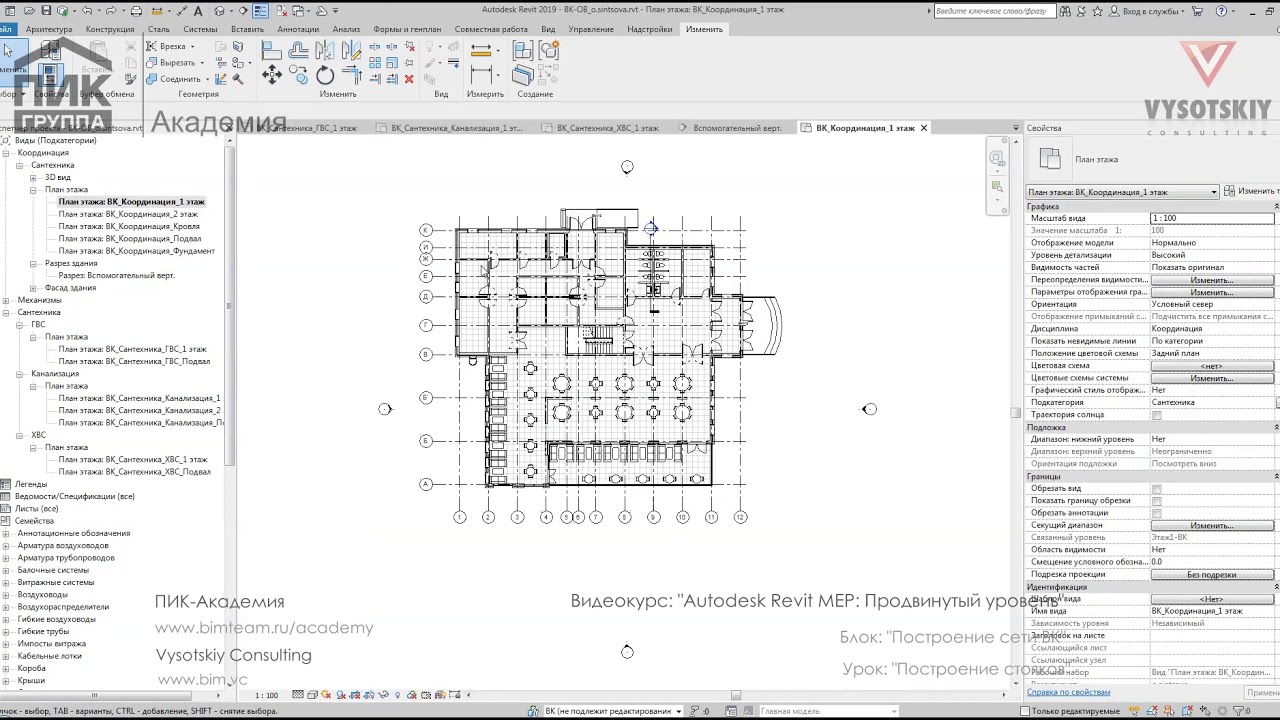 Продвинутый курс по построению трубопроводных систем разделов ОВ и ВК в Revit на основе архитектурной модели. Рассматриваются основные настройки программы, моделирование систем, а также формирование документации и спецификаций.