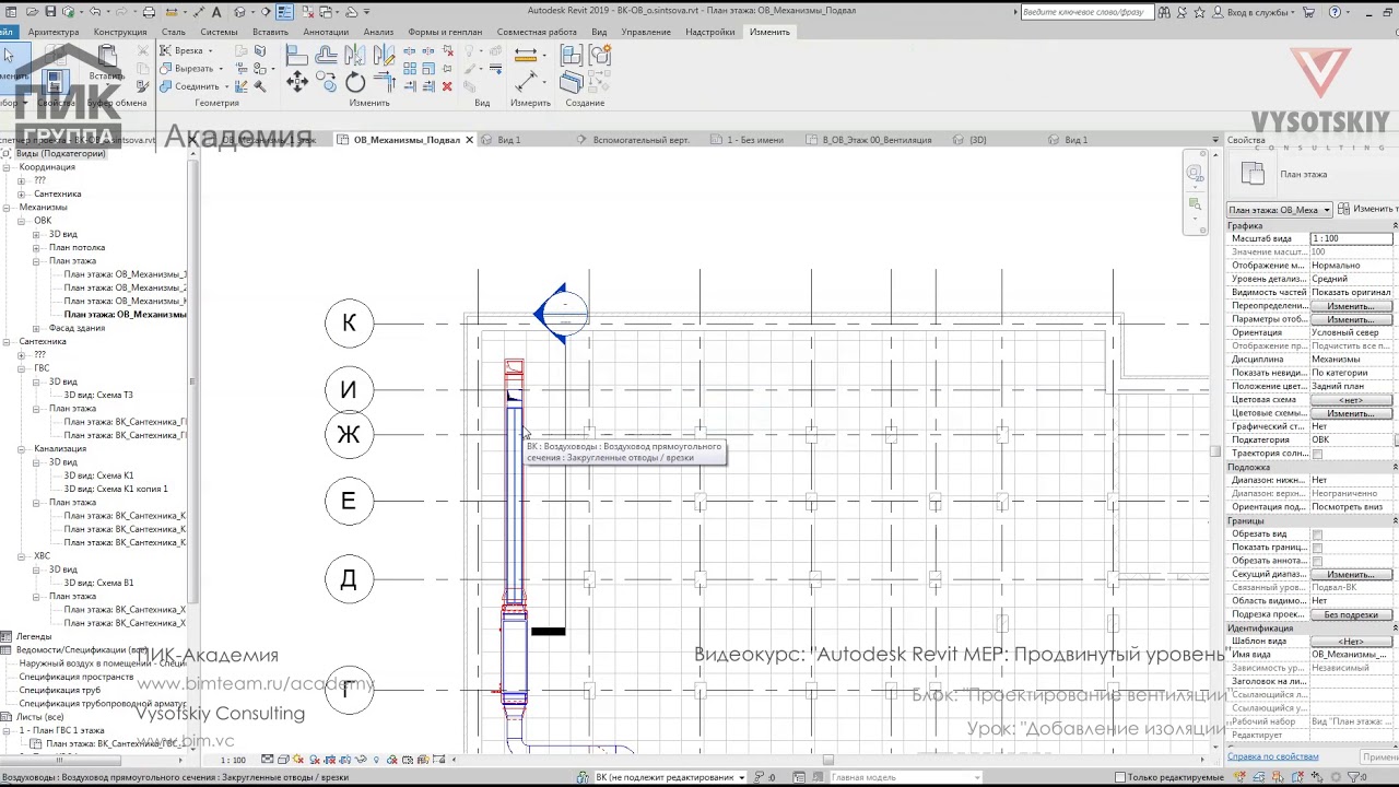 Продвинутый курс по построению трубопроводных систем разделов ОВ и ВК в Revit на основе архитектурной модели. Рассматриваются основные настройки программы, моделирование систем, а также формирование документации и спецификаций.