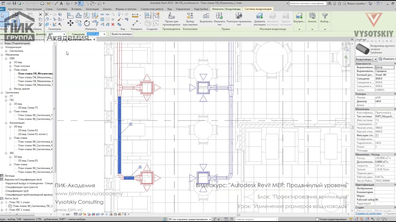 Продвинутый курс по построению трубопроводных систем разделов ОВ и ВК в Revit на основе архитектурной модели. Рассматриваются основные настройки программы, моделирование систем, а также формирование документации и спецификаций.