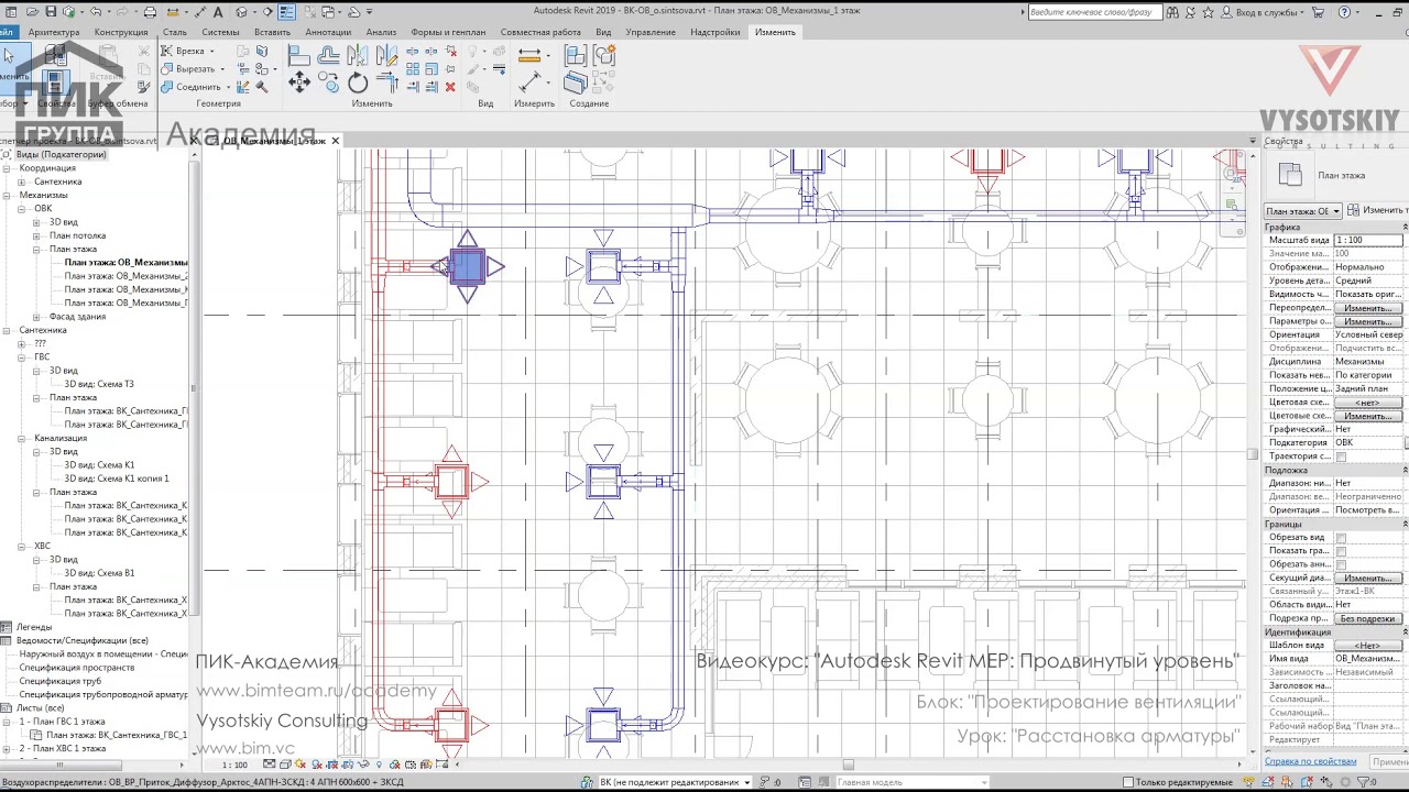 Продвинутый курс по построению трубопроводных систем разделов ОВ и ВК в Revit на основе архитектурной модели. Рассматриваются основные настройки программы, моделирование систем, а также формирование документации и спецификаций.