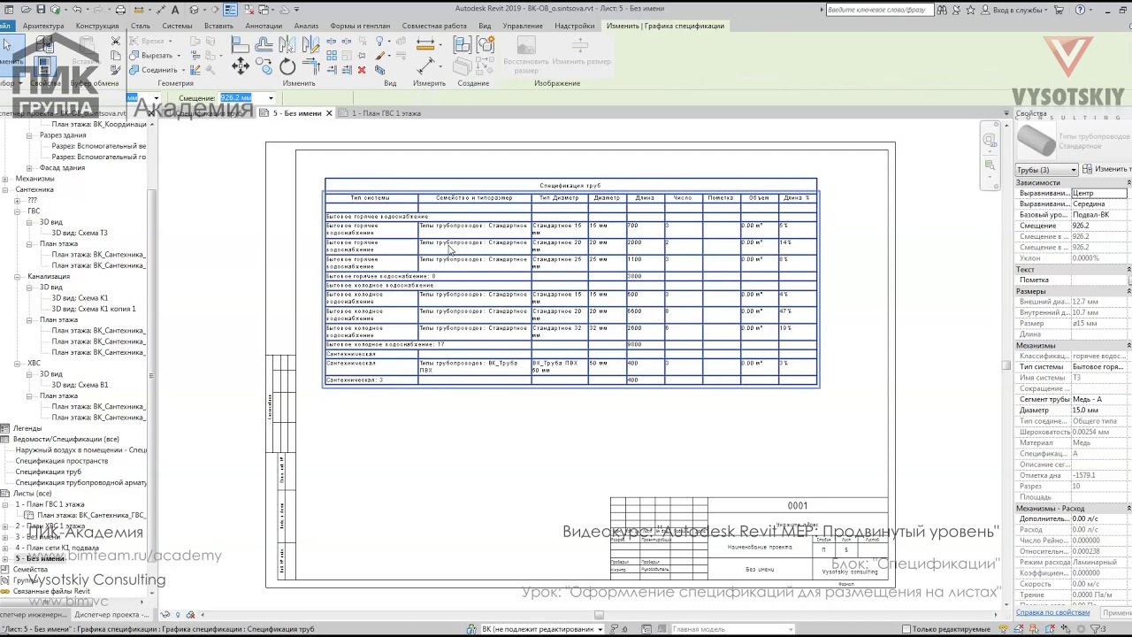 Продвинутый курс по построению трубопроводных систем разделов ОВ и ВК в Revit на основе архитектурной модели. Рассматриваются основные настройки программы, моделирование систем, а также формирование документации и спецификаций.