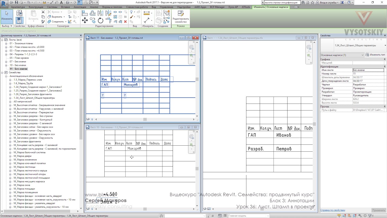 Лист. Штамп в проекте