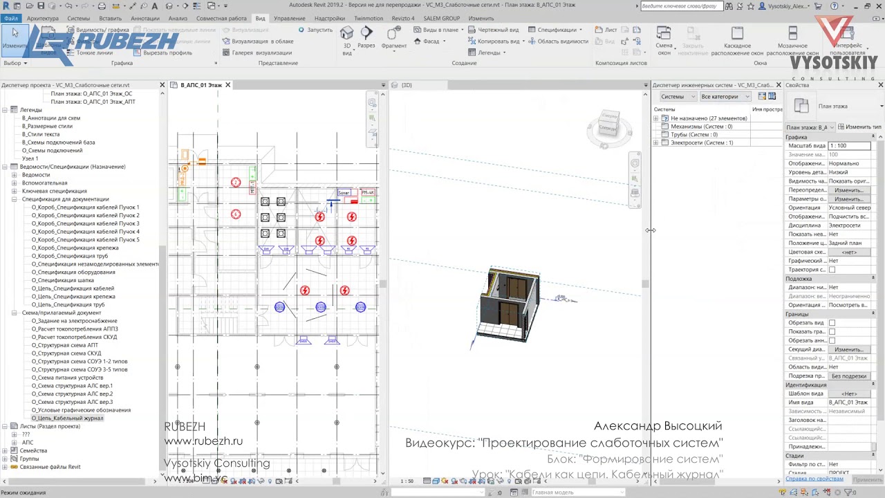 Проектирование слаботочных сетей на основании шаблона, разработанного компанией RUBEZH: размещение компонентов, подсчет кабелей, расчет емкости аккумуляторных батарей и многое другое.