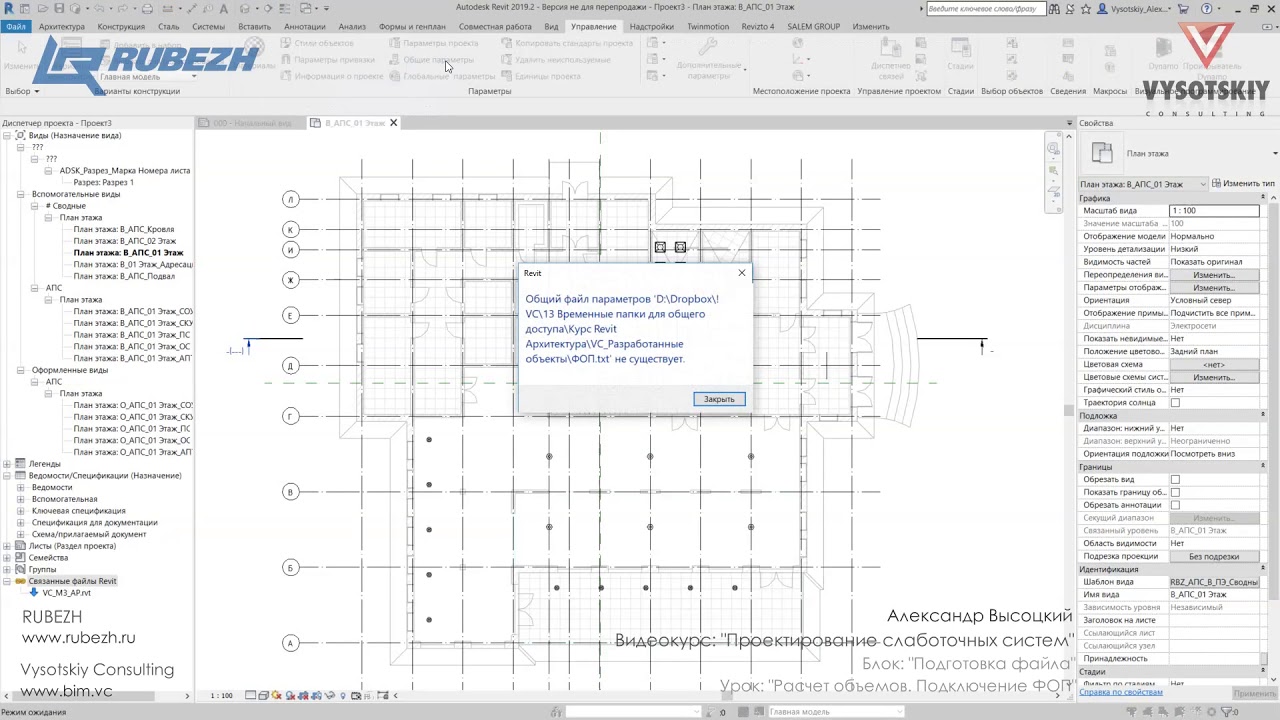 Проверка расчета объемов помещений и автоопределения верхнего предела. Подключение файла общих параметров для корректной работы шаблона.