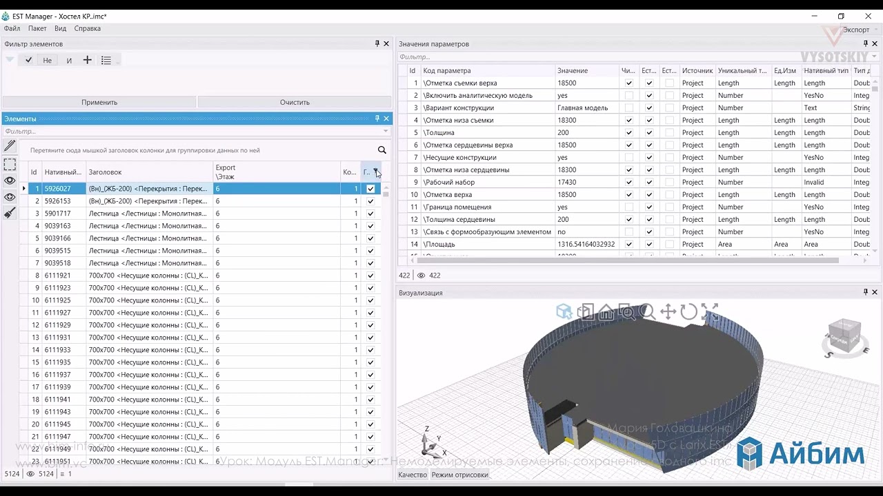 Модуль EST.Manager: Немоделируемые элементы, сохранение сводного imc