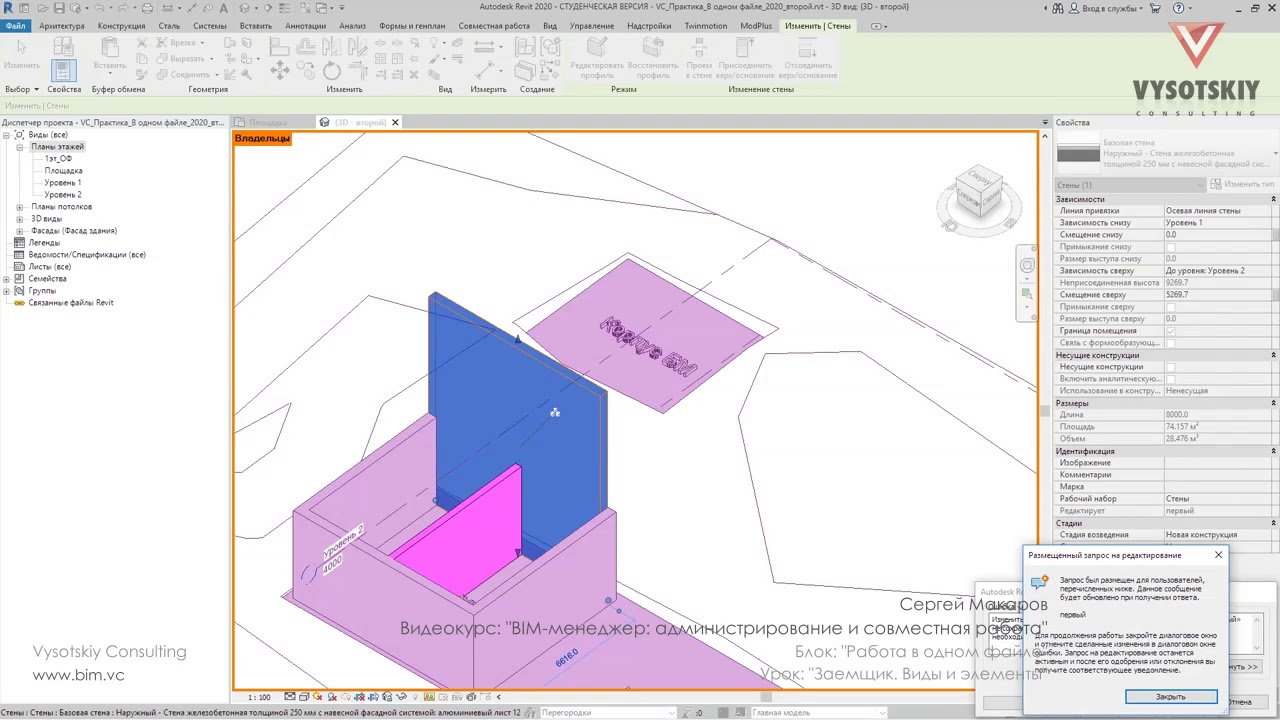 В Revit можно получить доступ не ко всему рабочему набору, а только к его части. Это называется стать заемщиком. Тонкости работы в режиме заемщика описаны в видео.