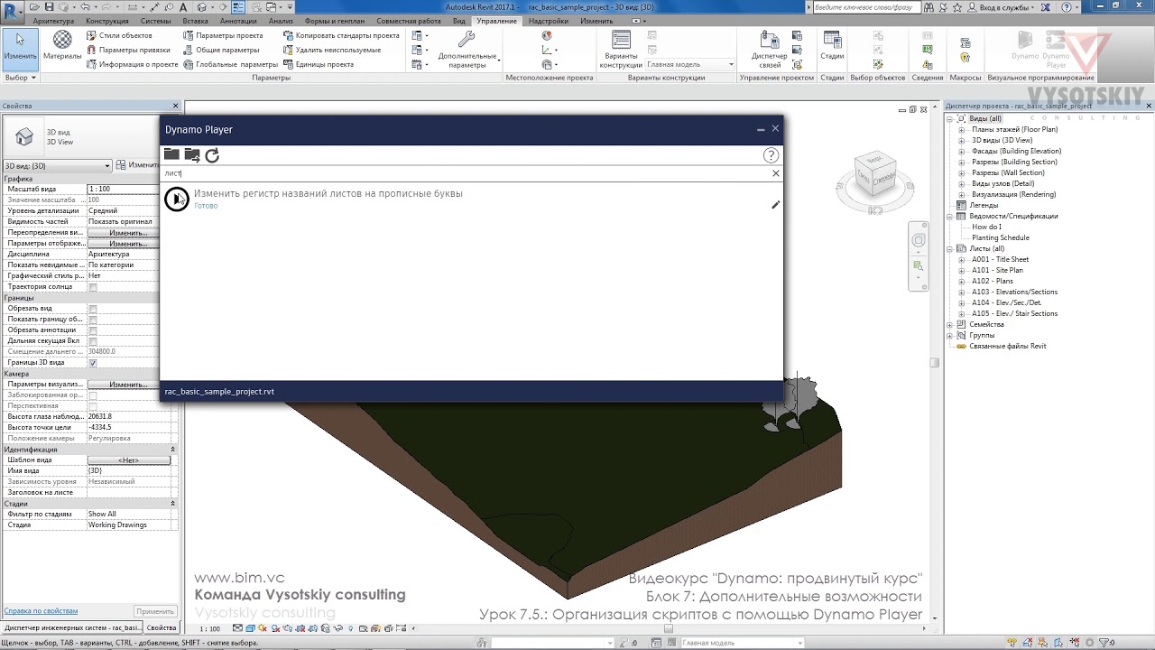 В бесплатном видеокурсе по Dynamo вы научитесь всем нюансам написания дополнений. Изучив материал, вы ускорите свою производительность на 15-200%. Главная ценность курса — отдельная глава с написанием дополнений для ежедневных задач: поиск элементов, перенумерация элементов, случайная расстановка объектов и другое.