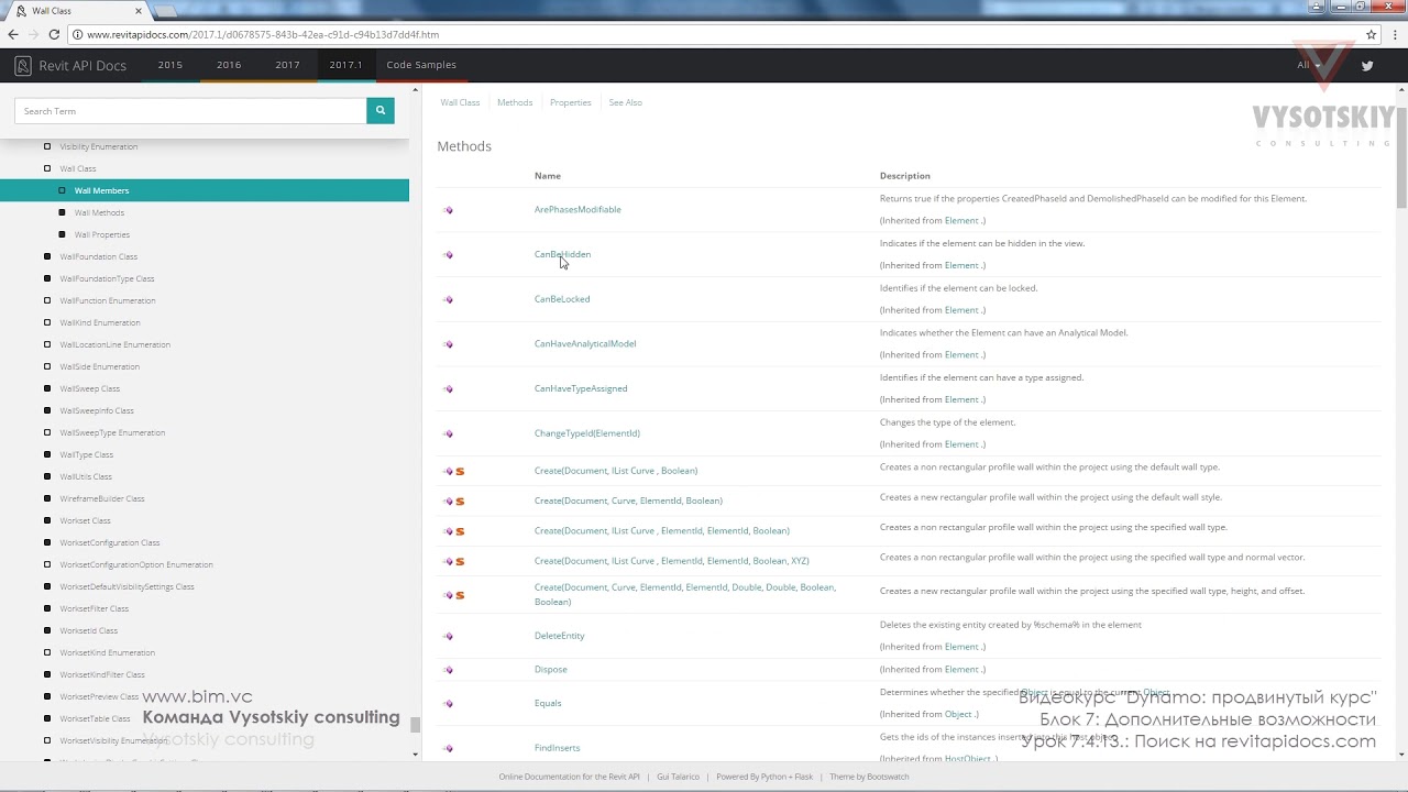 Ресурс для изучения классов Revit и применяемых к ним методов: http://www.revitapidocs.com/. Возможность просматривать примеры использования некоторых методов на языке Python.