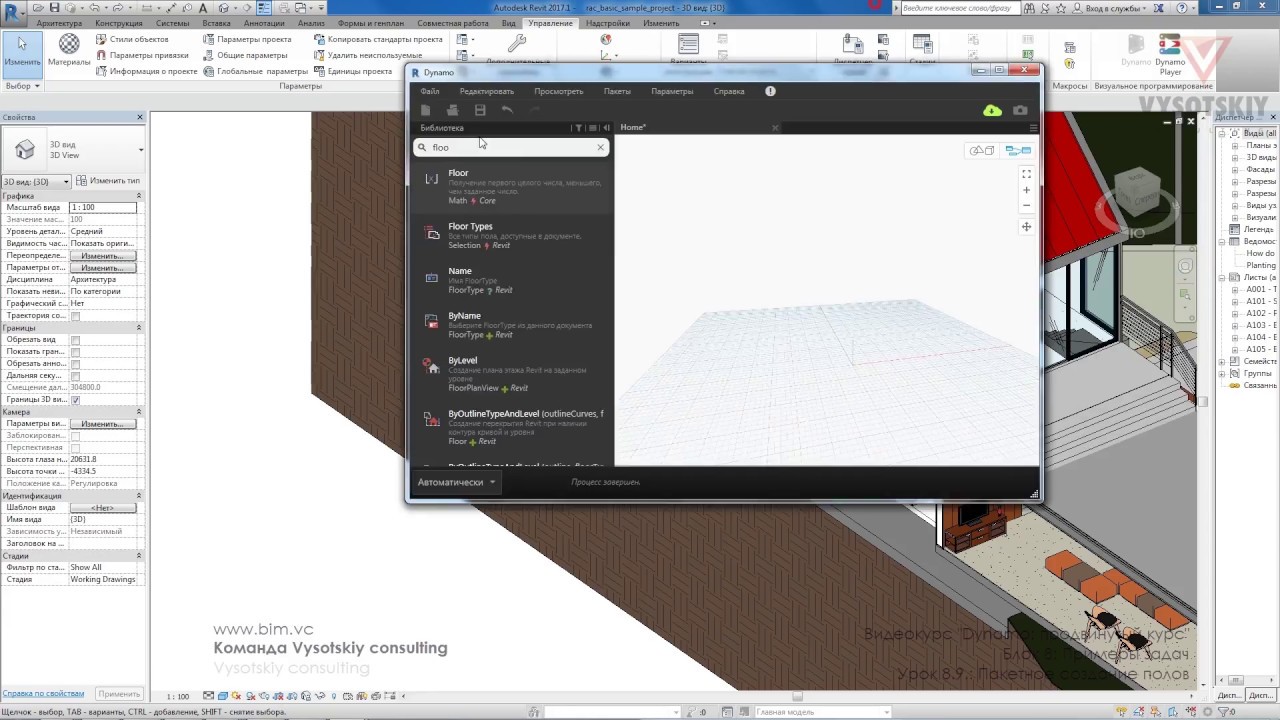 В бесплатном видеокурсе по Dynamo вы научитесь всем нюансам написания дополнений. Изучив материал, вы ускорите свою производительность на 15-200%. Главная ценность курса — отдельная глава с написанием дополнений для ежедневных задач: поиск элементов, перенумерация элементов, случайная расстановка объектов и другое.