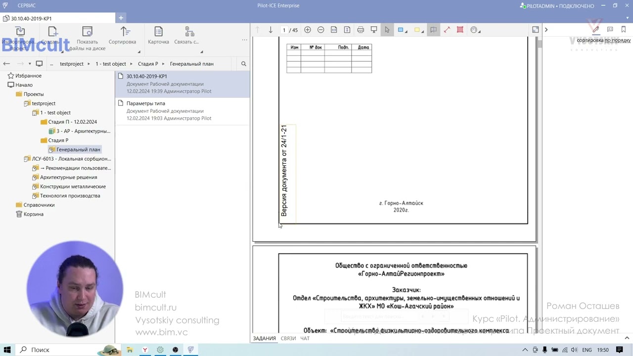Курс по администрированию системы Pilot предназначен для всех, кто хочет познакомится с таким понятием как среда общих данных, он подходит как для студентов, которые хотят настроить свою собственную среду общих данных в рамках курсового проекта, так и для BIM-специалистов организаций, которые настраивают Pilot уже в реальных условиях. Мы затронем все основные темы создания СОД, от развертывания системы и её резервного копирования, до настроек замечаний и создания скриптов автоматизации. Просмотрев курс, вы поймете главные принципы работы системы Pilot, приобретете навыки по созданию структуры проекта, процессов создания и согласования проектной документации, и конечно же автоматизации этих процессов.