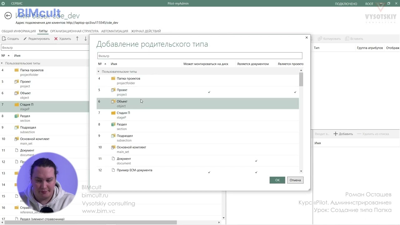 Создадим собственный тип папки «Стадия П» и настроим его положение в иерархии папок проекта.