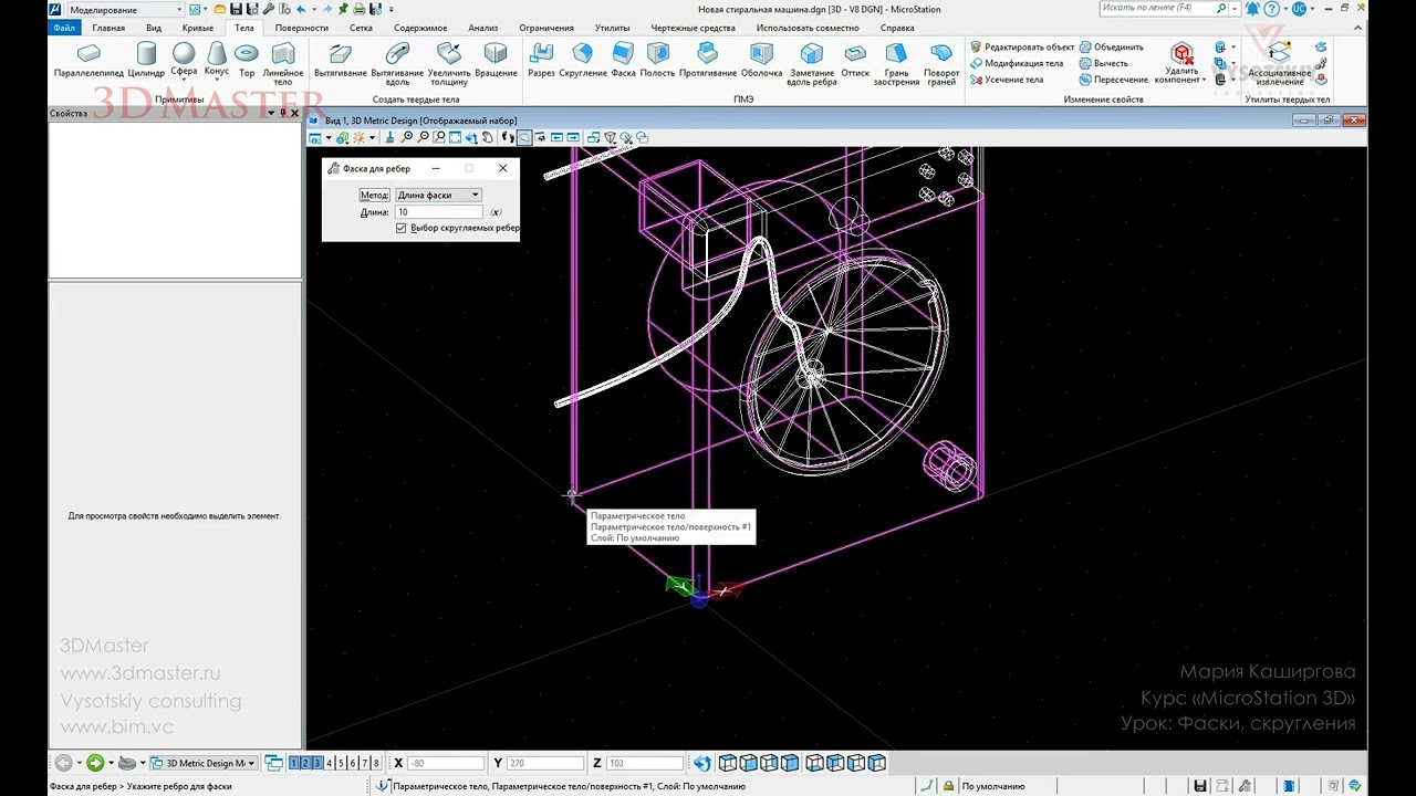 Вы узнаете о функциях Bentley MicroStation 3D, познакомитесь с инструментами создания базовой геометрии и фрагментов, а также научитесь использовать привязки, атрибуты, слои, растровые подложки и материалы.