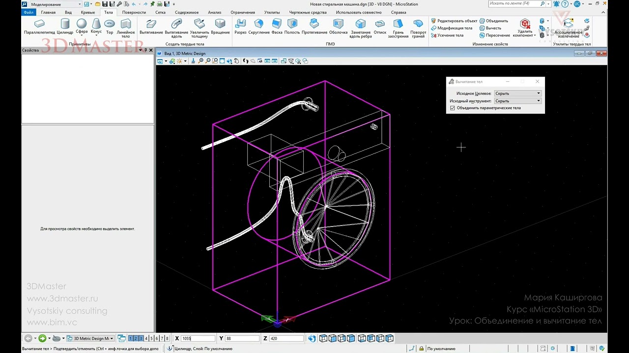 Вы узнаете о функциях Bentley MicroStation 3D, познакомитесь с инструментами создания базовой геометрии и фрагментов, а также научитесь использовать привязки, атрибуты, слои, растровые подложки и материалы.