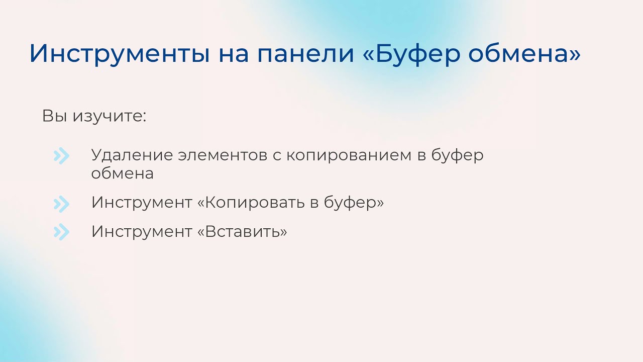 Инструменты на панели «Буфер обмена»