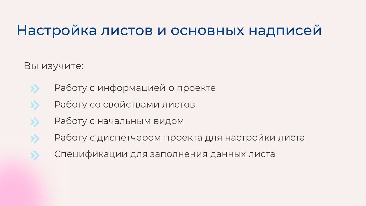 В курсе рассмотрены основные инструменты, необходимые для работы, основы работы с семействами и создание простейших семейств, правила для грамотной настройки совместной работы и эффективного использования программы.