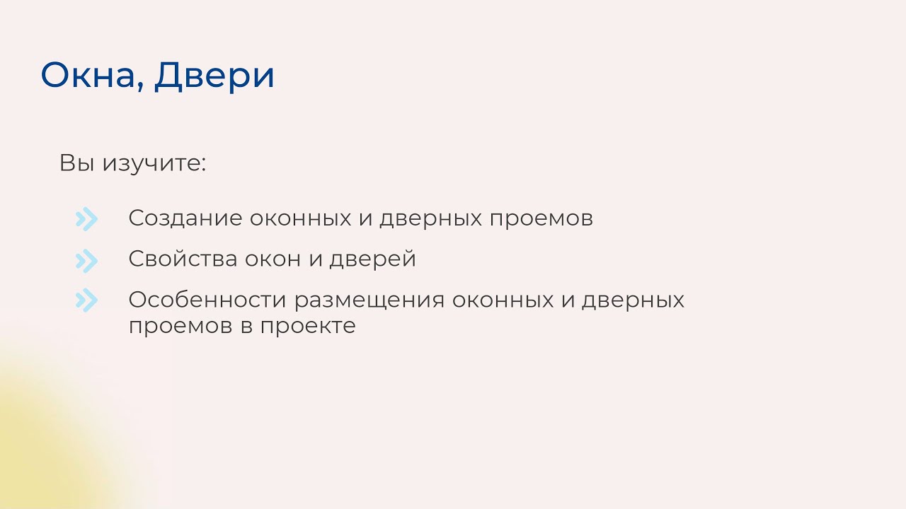 В курсе рассмотрены основные инструменты, необходимые для работы, основы работы с семействами и создание простейших семейств, правила для грамотной настройки совместной работы и эффективного использования программы.