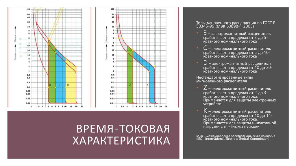 — Номинальное напряжение— Время-токовые характеристики
