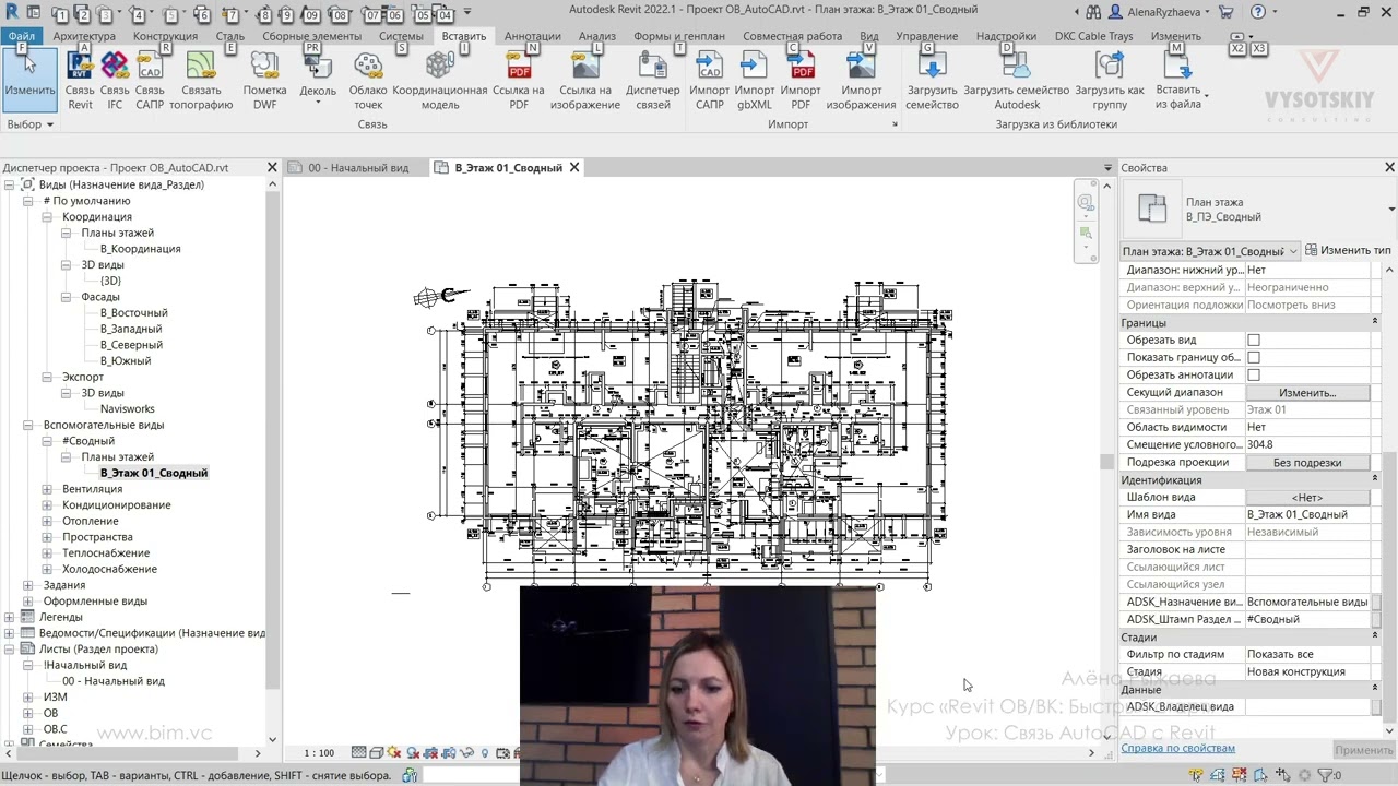В ходе видеокурса мы рассмотрим процесс проектирования от начала создания проекта с настройкой связей с файлами архитектуры (выполненной непосредственно с помощью связок файлов Revit, а также с использованием подложек AutoCAD), научимся создавать рабочие виды (планы, 3D-виды, схемы) и управлять их видимостью с использованием шаблонов видов, а также создадим спецификации и оформим проектную документацию.