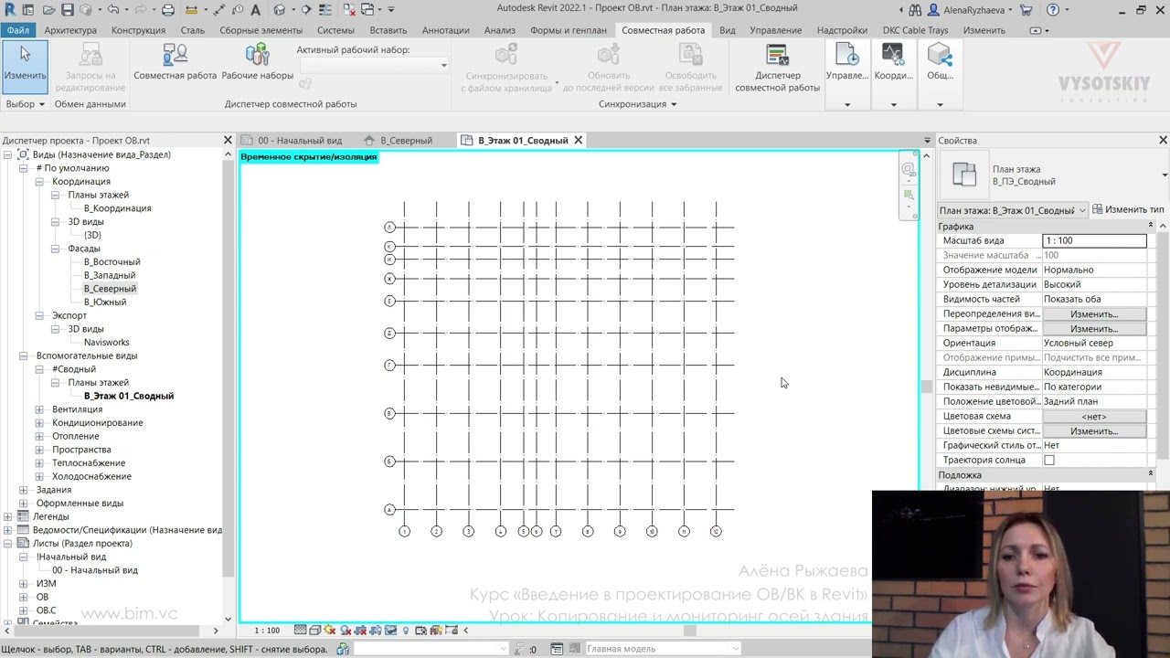 В ходе видеокурса мы рассмотрим процесс проектирования от начала создания проекта с настройкой связей с файлами архитектуры (выполненной непосредственно с помощью связок файлов Revit, а также с использованием подложек AutoCAD), научимся создавать рабочие виды (планы, 3D-виды, схемы) и управлять их видимостью с использованием шаблонов видов, а также создадим спецификации и оформим проектную документацию.