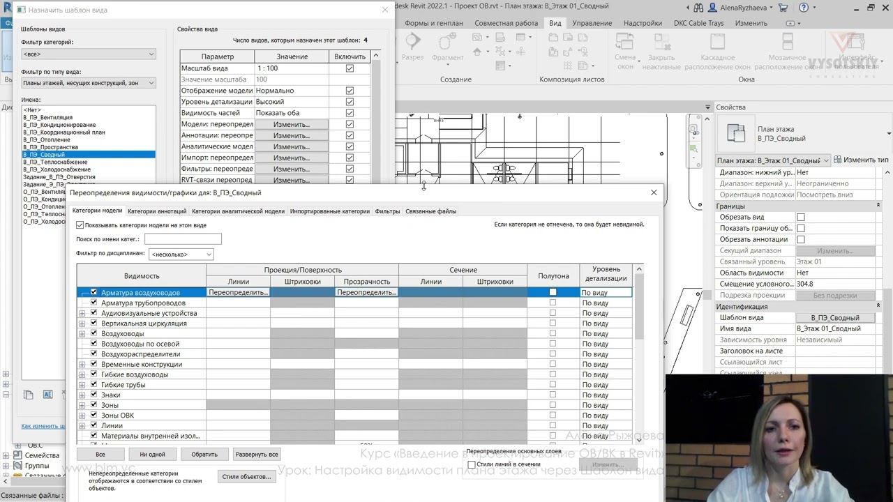 В ходе видеокурса мы рассмотрим процесс проектирования от начала создания проекта с настройкой связей с файлами архитектуры (выполненной непосредственно с помощью связок файлов Revit, а также с использованием подложек AutoCAD), научимся создавать рабочие виды (планы, 3D-виды, схемы) и управлять их видимостью с использованием шаблонов видов, а также создадим спецификации и оформим проектную документацию.