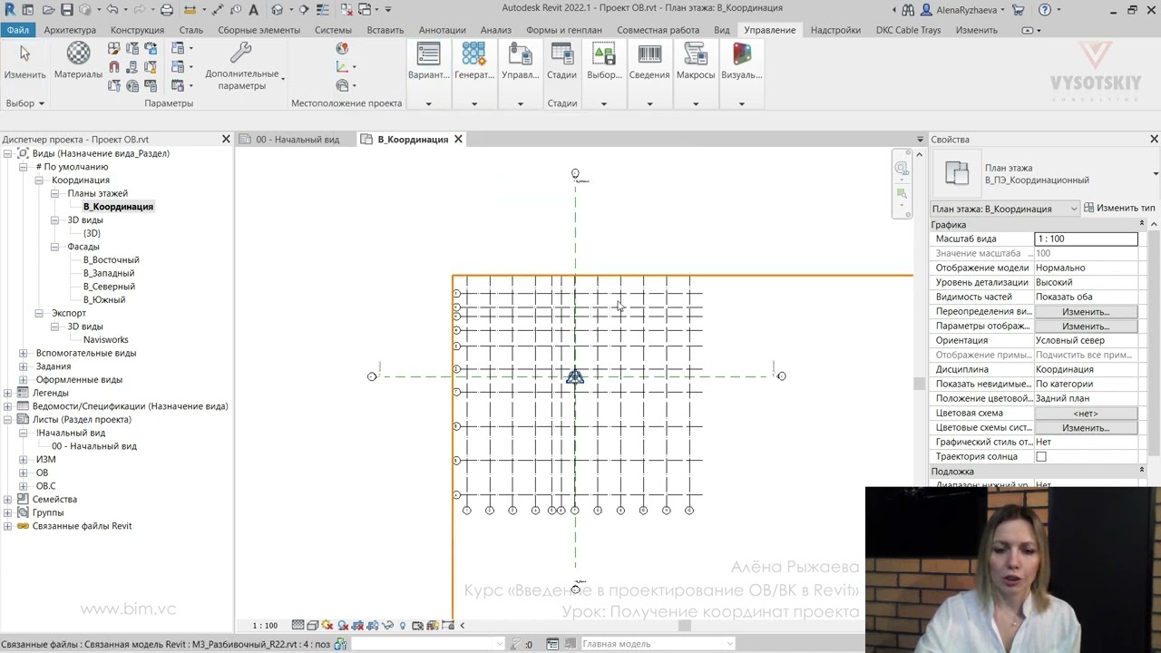 В ходе видеокурса мы рассмотрим процесс проектирования от начала создания проекта с настройкой связей с файлами архитектуры (выполненной непосредственно с помощью связок файлов Revit, а также с использованием подложек AutoCAD), научимся создавать рабочие виды (планы, 3D-виды, схемы) и управлять их видимостью с использованием шаблонов видов, а также создадим спецификации и оформим проектную документацию.