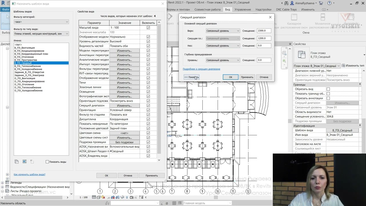 В ходе видеокурса мы рассмотрим процесс проектирования от начала создания проекта с настройкой связей с файлами архитектуры (выполненной непосредственно с помощью связок файлов Revit, а также с использованием подложек AutoCAD), научимся создавать рабочие виды (планы, 3D-виды, схемы) и управлять их видимостью с использованием шаблонов видов, а также создадим спецификации и оформим проектную документацию.