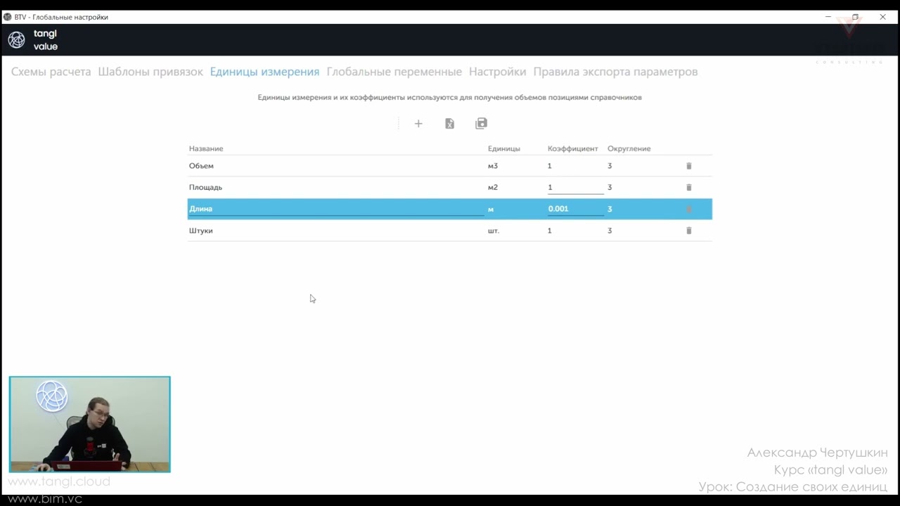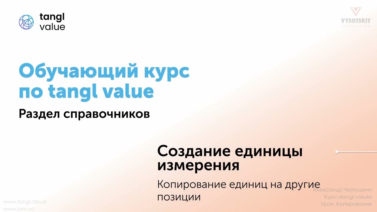 В данном курсе представлено наглядное пособие по работе с сервисом для получения ведомостей объемов работ, стоимости реализации проекта/объекта на любой стадии. Курс будет полезен как для технических специалистов, которые хотят обуздать структуризацию данных BIM-моделей, так и для руководителей направлений с целью эффективного управления жизненным циклом объекта.Курс записан силами BIM-Cluster – партнера компании Tangl.