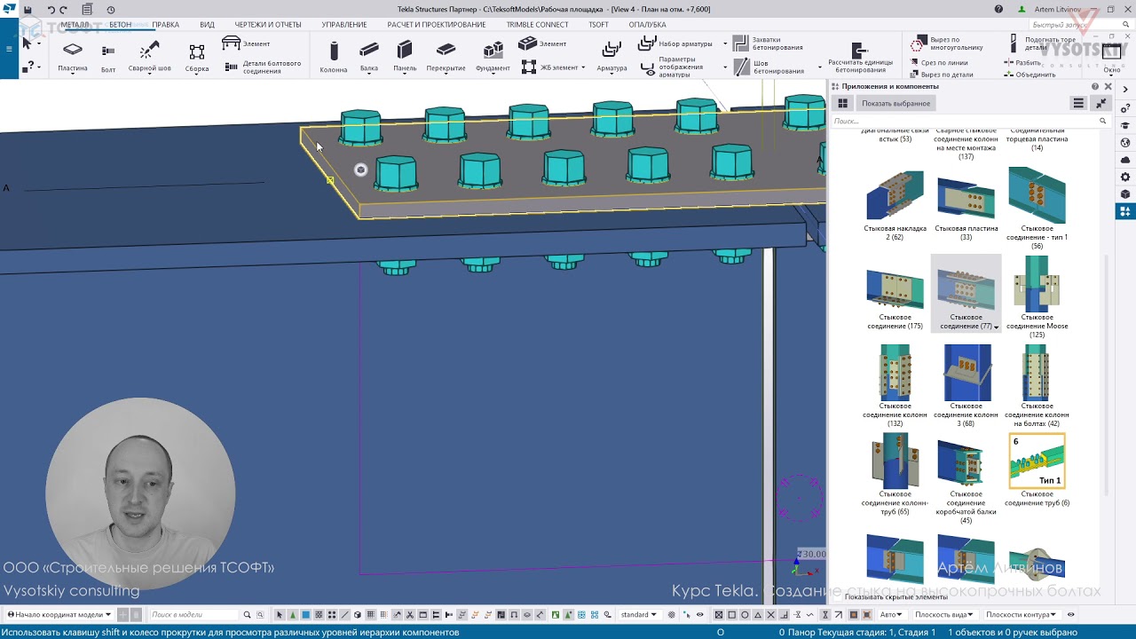 Курс поможет вам научиться создавать модели простых металлических конструкций и оформлять на них документацию. Это отличная отправная точка для последующего более глубокого изучения программы Tekla Structures.