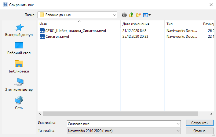 А далее Файл → Сохранить как → NWD (не забудьте указать тип файла .NWD в нижней части окна):