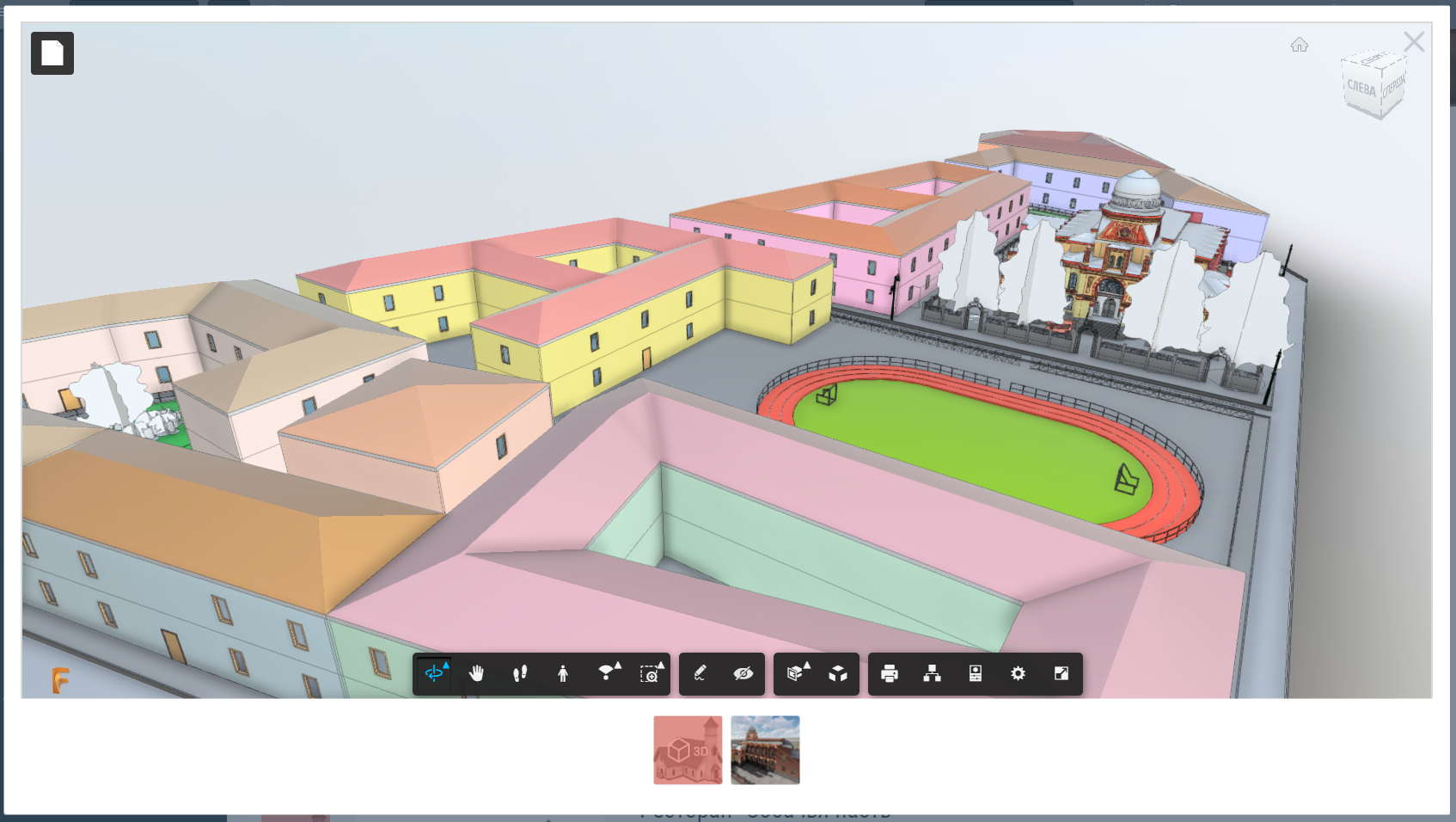 Для прогулки в режиме отображения от первого лица необходимо нажать на иконку человечка и следовать указаниям на экране: