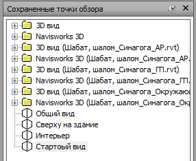 Самые продвинутые могут задать в Navisworks стартовый вид и точки обзора: установить камеру в нужном месте а затем Точки обзора → Создать точку обзора → В открывшейся панели ввести название.