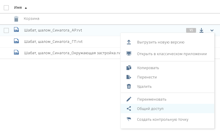 Данный файл необходимо разместить в «Admin Project» и в контекстном меню выбрать «Общий доступ», как описано выше.