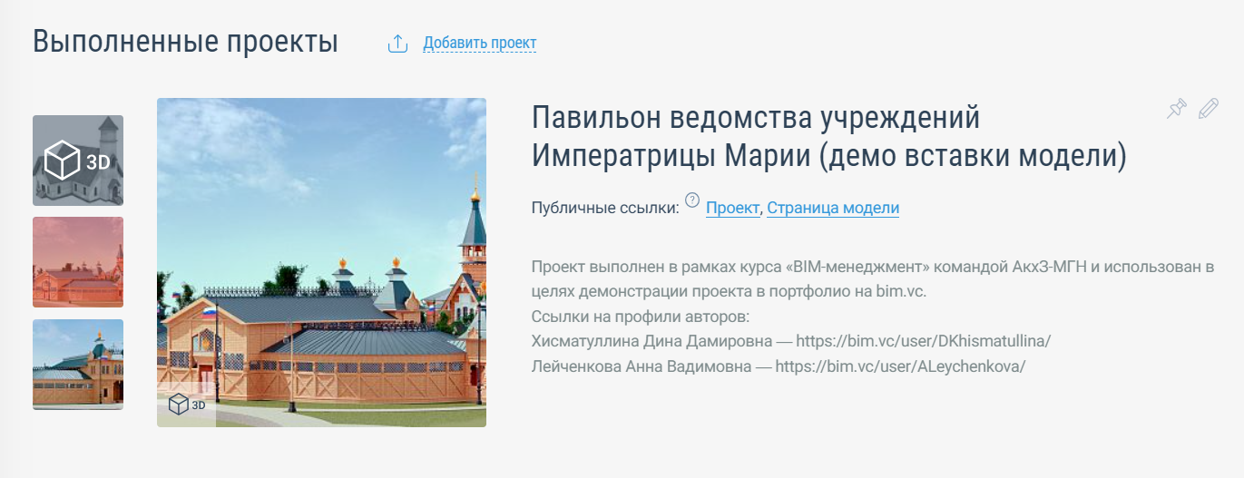 — https://bim.vc/user/Viktor_/ — с графиками компетенций, стереопанорамами и интерактивной 3D-моделью