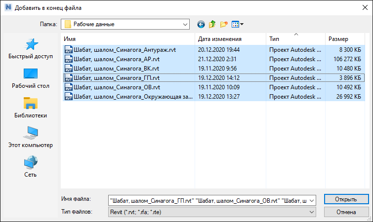 2. Выделите нужные файлы и откройте сборную модель.