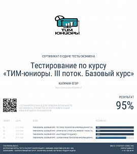 | ТИМ-юниоры. III поток. Базовый курс | 18% | 12.11.2025 |