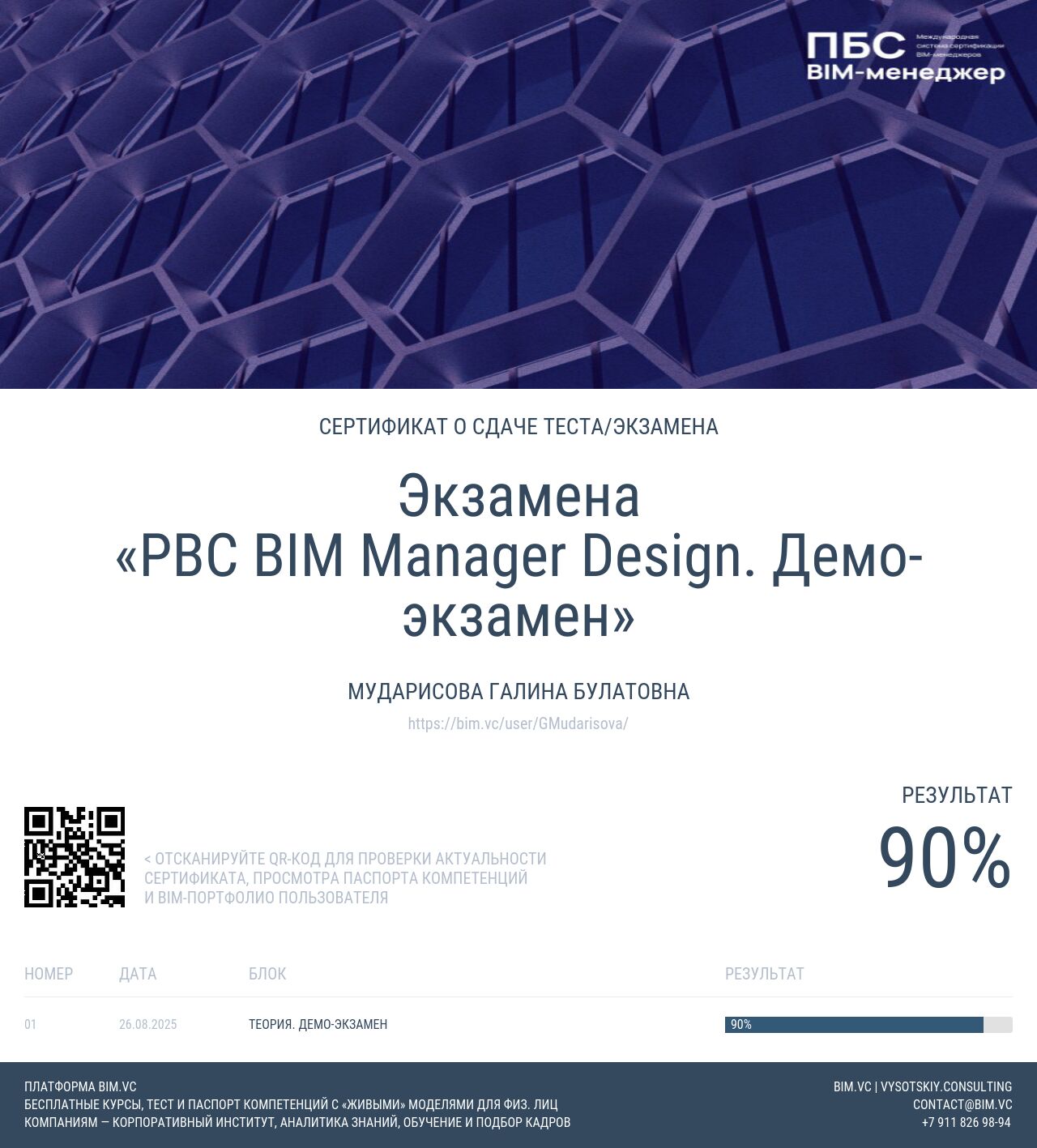 | PBC BIM Manager Design. Демо-экзамен | 90% | 26.08.2025 |